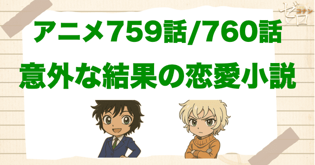 2014年11月22日放送の759話/760話「意外な結果の恋愛小説(前編)(後編)」。 前回のアニメ放送は「自首したお笑い芸人」でした。 原作回では、赤女の続きに当たるお話...
